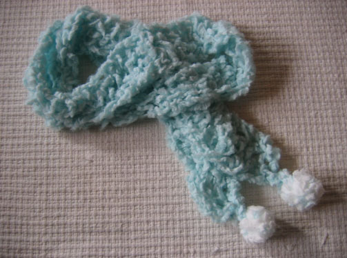 毛糸1玉で子供用なら十分の長さのマフラーになり、フワフワの可愛いのが出来上がりましたw所要時間1時間!!