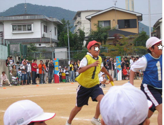 長男のリレー!やっぱり6年生ともなると、リレーにも迫力が・・・wお兄ちゃん頑張って1人抜きましたっ
