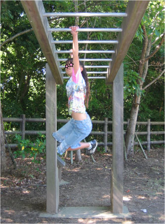 の皮がずるむけになり、保健室の先生に鉄棒ゎ暫く控えるよぅに・・・と言われて最近あんまりやってなかったみたいだけど、うんていもしっかり出来てるじゃんwとちょぃ感動(THE親ばか)